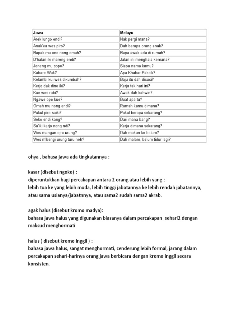 Bahasa Jawa Ke Bahasa Melayu - Baca informasi di internet dalam bahasa jawa7 7.. Walau demikian, bahasa jawa juga dituturkan oleh sebagian orang banten. Tanya ke teman yang bisa bahasa jawa4 4.pelajari tingkatan bahasa jawa5 5. Sebelum bahasa indonesia ditetapkan sebagai bahas nasional, pada awalnya bahasa indonesia berasal dari bahasa melayu. Translate bahasa jawa bisa dilakukan melalui situs ini secara mudah dan otomatis. Dalam bahasa melayu moden, bahasa istana masih dapat difahami oleh mereka yang tidak menggunakan.