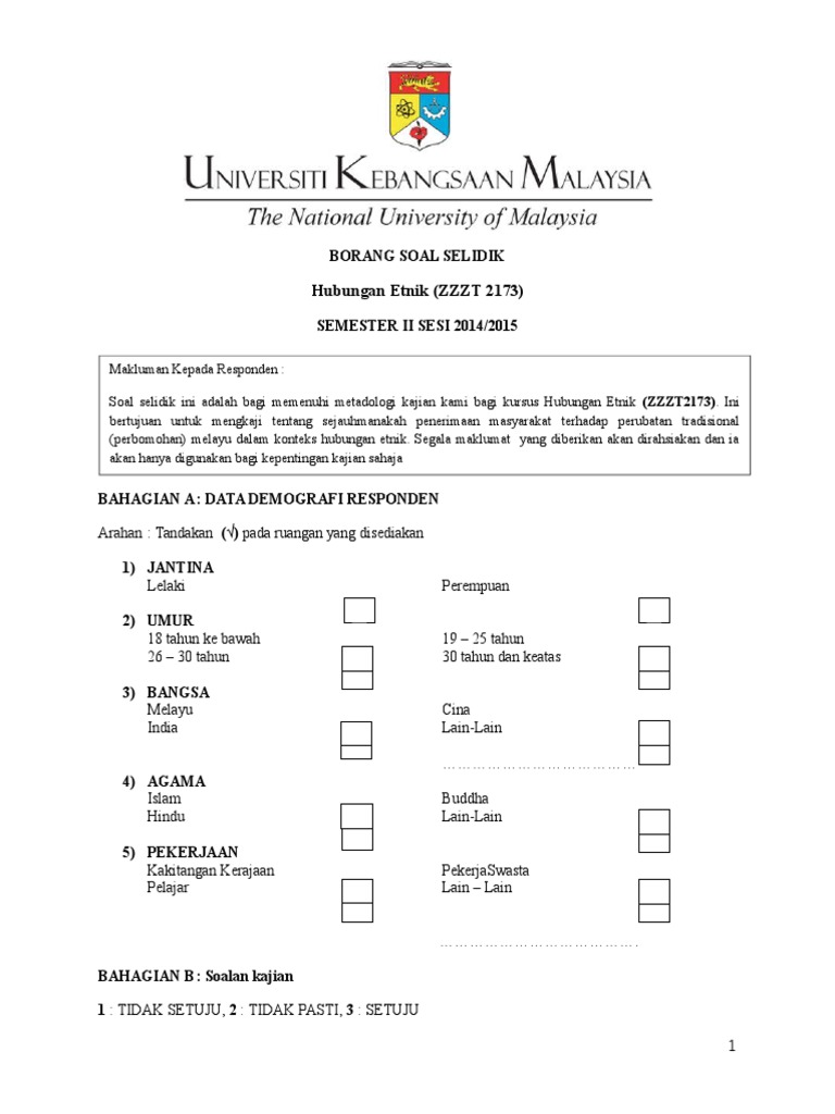 Contoh Borang Soal Selidik Kajian / Borang kaji atau soal selidik ini perlu dibuat dalam perlaksanaan dan disertakan dalam pelaporan tugasan wajib bagi ujian pelbagai instrumen (geografi) pentaksiran tingkatan 3 (pt3) kajian lapangan atau lebih dikenali sebagai kerja kursus, agar menjelaskan lagi hasil dapatan dan maklumat yang.
