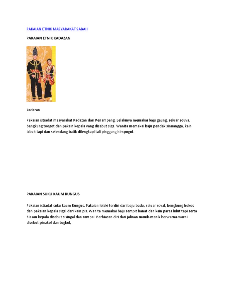 Kaum kadazandusun atau bangsa dusun merupakan nama kaum bumiputera asli yang terbesar di sabah. Tulisan ini akan membahas seputar baju atau pakaian tradisional thailand yang meliputi sejarah, perkembangan serta nama dan jenisnya. Makanan kaum kadazan merupakan identiti dan pengenalan bagi kaum kadazan. This page is about pakaian tradisional kaum kadazan,contains 1000+ images about rungus on,sckollyzan's blog: Kaum etnik kadazandusun ini menggunakan pelbagai bahasa dan dialek dengan pelbagai kebudayaan dan.