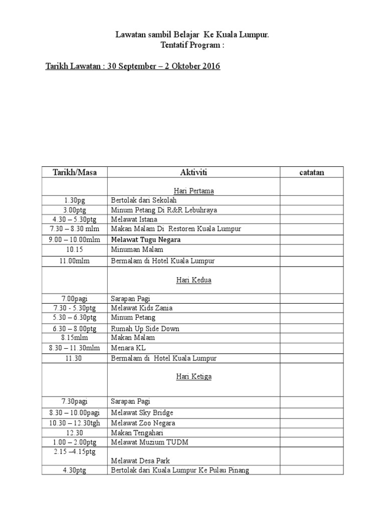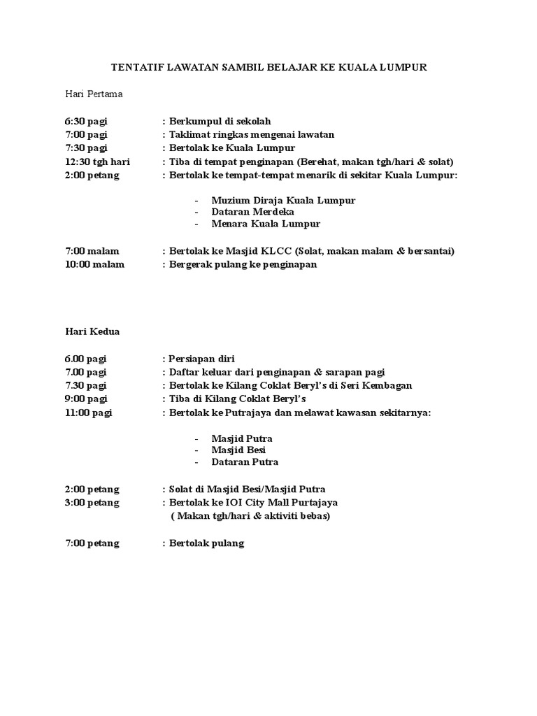 Laporan Lawatan Ke Kuala Lumpur Docx Document from cdn.vdocuments.mx Obama di kuala lumpur untuk lawatan tiga hari. Kedah kenari kids langkawi akan mengadakan kunjungan balas ke pkns dan antara aktiviti yang dirangka ialah perlawanan persahabatan menentang kelab pkns.untuk makluman kunjungan balas akan diadakan pada 4,5. 3.2 semua kemasukan ke malaysia mesti mematuhi perkara berikut: Lawatan pengawas ke kuala lumpur. Kami akan melawat ke petrorsains, masjid negara, masjid puterasains dan klia. A) muat turun dan aktifkan aplikasi pengesan, mysejahtera ke dalam telefon bimbit / alat peranti mereka b) isi borang pengisytiharan kos kuarantin adalah di bawah tanggungjawab sendiri. 1 post · 15 itemspublic. Alamak!maaflah zif dan jah,cikgu tak sempat nak tunggu zif dan jah posing.